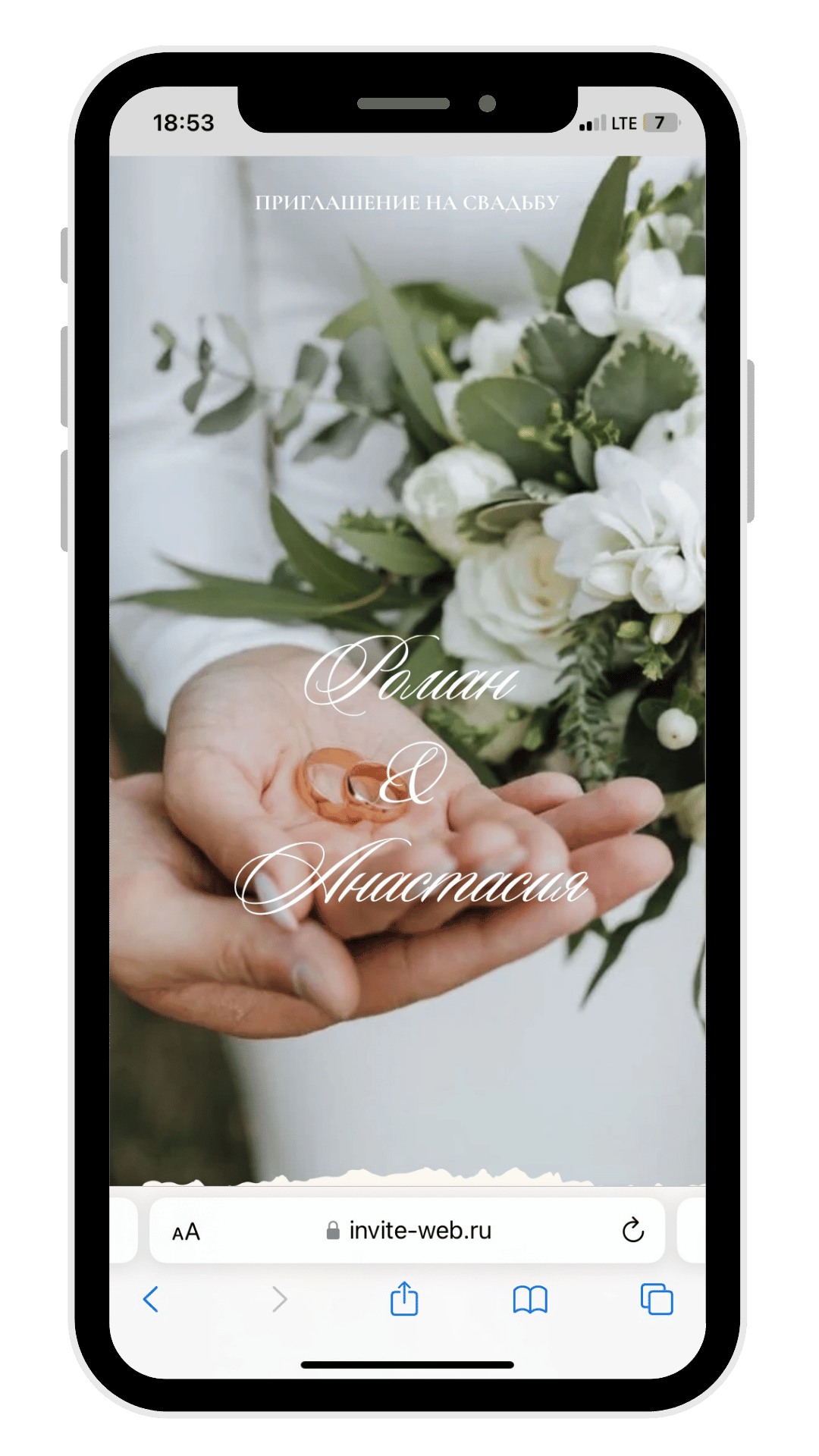 Сайт — это новый современный вид электронных приглашений! Вы получаете ссылку на сайт, посвященный торжеству. Приглашение будет отображаться только на смартфонах (для отправки в мессенджерах и социальных сетях).